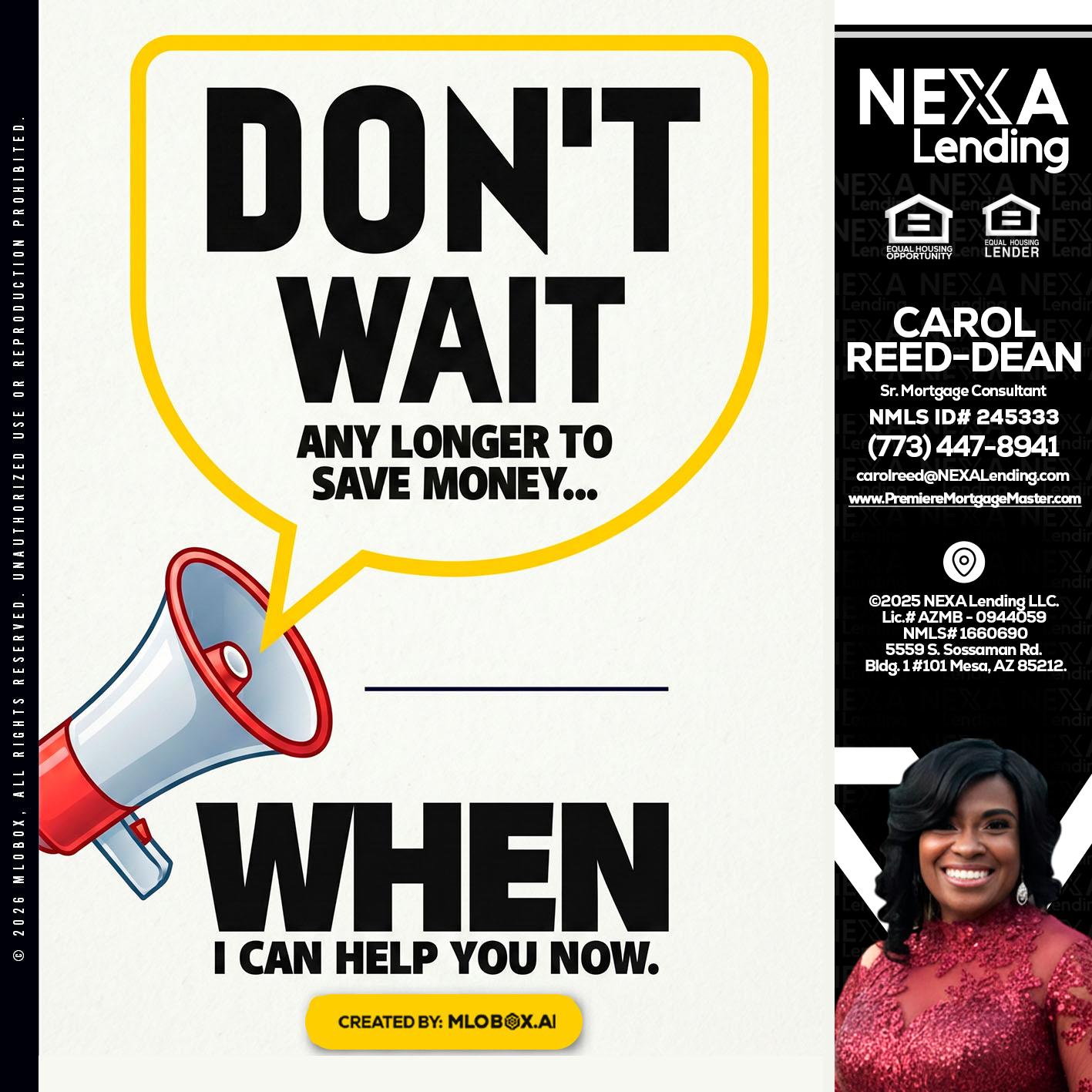 https://wp-premieremortgagemaster.s3.amazonaws.com/wp-content/uploads/2026/04/16191054/CAROL-REED-22.jpg 1417 1417 Carol Dean https://wp-premieremortgagemaster.s3.amazonaws.com/wp-content/uploads/2025/11/26042347/NEXA-Lending-new-logo-copy-copy.png Carol Dean2026-04-16 19:10:572026-04-16 19:10:57DONT WAIT