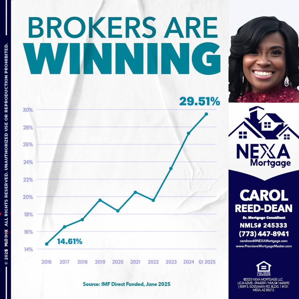 Hi, my name is Carol Dean. I’m a Loan Officer with NEXA Mortgage LLC., offering personalized mortgage solutions, fast customized quotes, great rates and service with integrity.