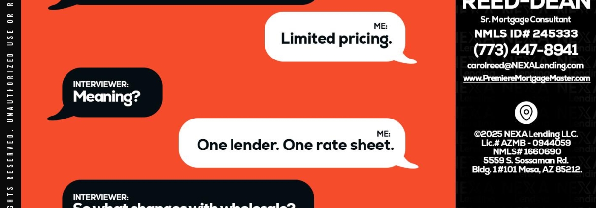 Hi, my name is Carol Dean. I’m a Loan Officer with NEXA Lending LLC., offering personalized mortgage solutions, fast customized quotes, great rates and service with integrity.