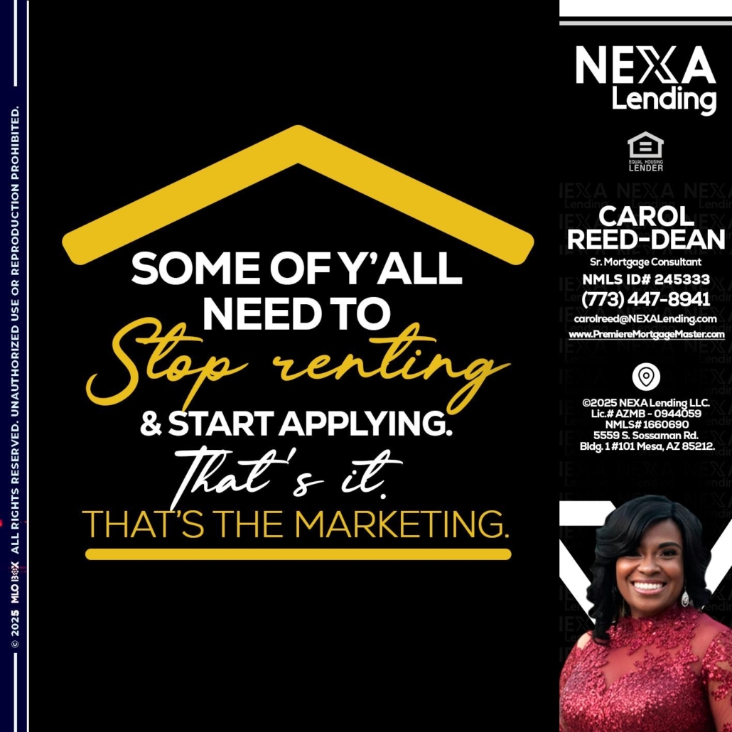 Hi, my name is Carol Dean. I’m a Loan Officer with NEXA Mortgage LLC., offering personalized mortgage solutions, fast customized quotes, great rates and service with integrity.