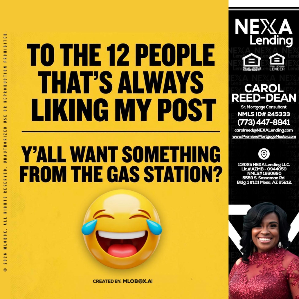 TO THE 12 PEOPLE - Carol Dean -Sr. Mortgage ConsultantHi, my name is Carol Dean. I’m a Loan Officer with NEXA Lending LLC., offering personalized mortgage solutions, fast customized quotes, great rates and service with integrity.