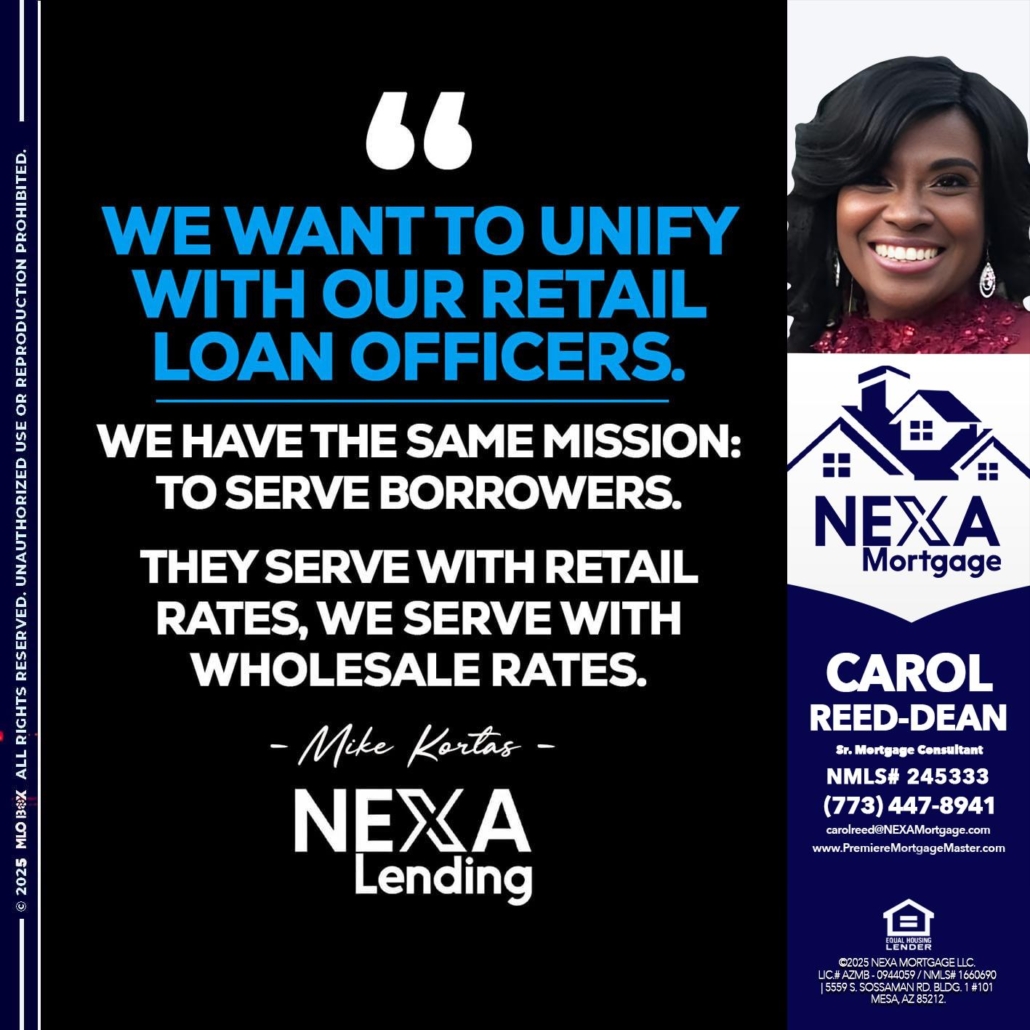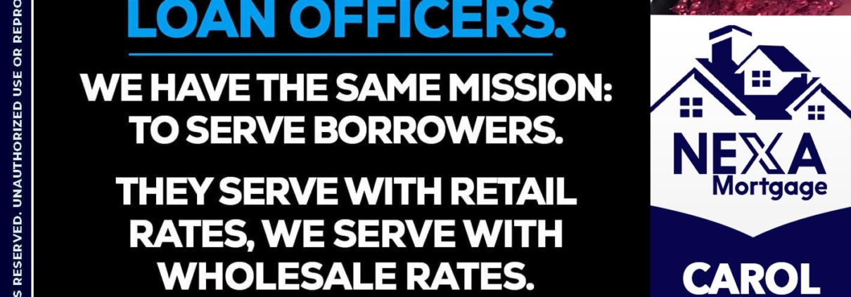 Hi, my name is Carol Dean. I’m a Loan Officer with NEXA Mortgage LLC., offering personalized mortgage solutions, fast customized quotes, great rates and service with integrity.