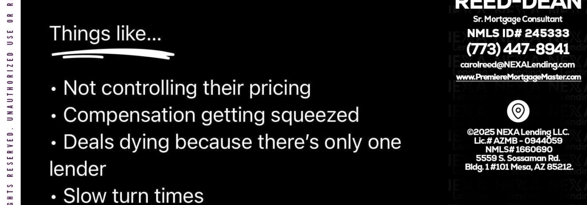 Hi, my name is Carol Dean. I’m a Loan Officer with NEXA Lending LLC., offering personalized mortgage solutions, fast customized quotes, great rates and service with integrity.